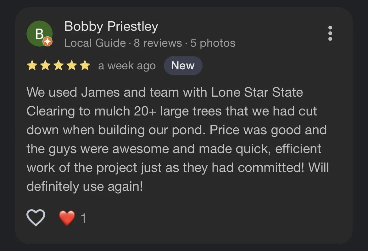 Lone Star State Clearing was born out of a vision shaped by 15 years of experience in some of the biggest companies in clearing & excavation.